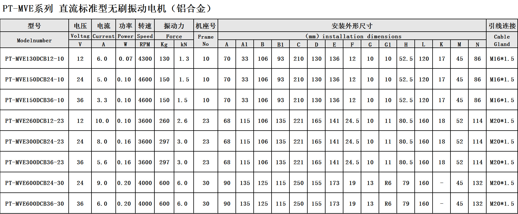 欣佳宏PT-MVE直流無刷鋁合金振動電機屬于第三代升級款,屬于深圳市欣佳宏科技有限公司的明星振動電機產品,屬于加強防水型振動電機,該系列電機有單相振動電機和三相振動電機兩種參數,此系列小型振動電機已廣泛用于礦山、冶金、煤炭、電力、建筑、化工、醫療保健、鑄造、食品、噴噴涂設備、篩粉、糧食機械等。欣佳宏PT-MVE直流無刷鋁合金振動電機已獲得國內外鋁合金小型振動電機行業客戶的高度認可;